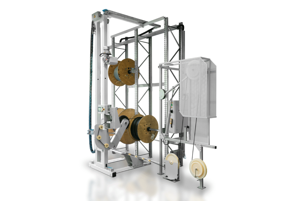 Rack motorisé permettant le déroulage automatique des tambours.