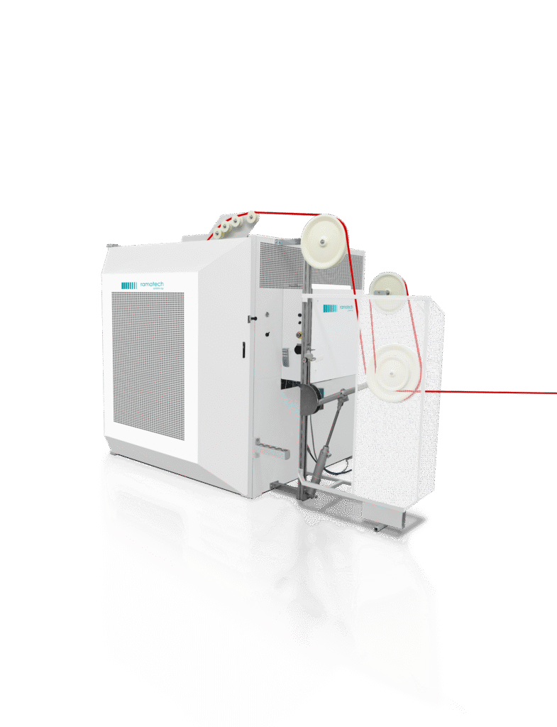 Machine de bobinage pour couronnes et bobines avec coupe intégrée.